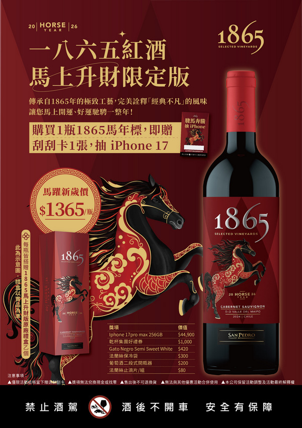 智利 聖派德羅酒廠 1865 精選葡萄園系列 卡貝納蘇維翁紅酒 2023年 <馬年標>